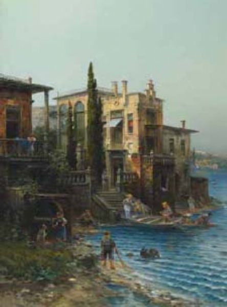 THE STEPS OF A BUSY LAKESIDE VILLA