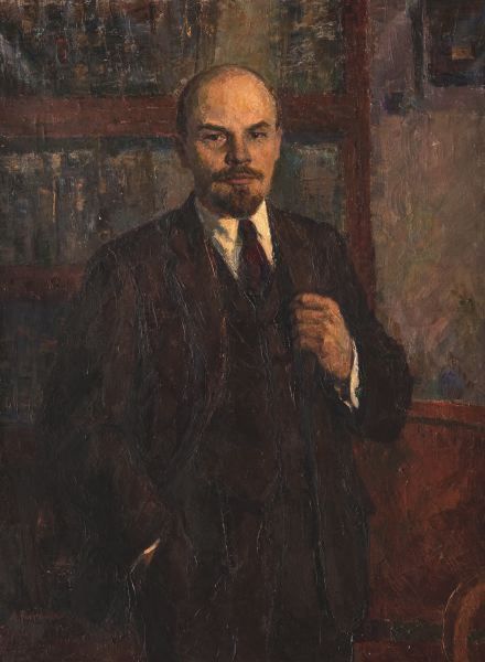 Portrait of Lenin, three quarter length, dressed in a brown suit
