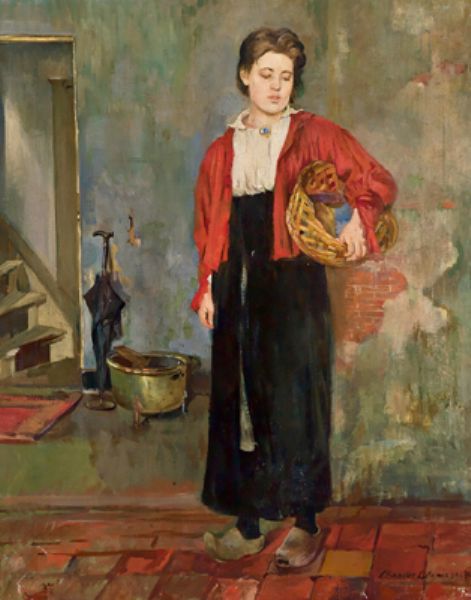 Interior with a Young Woman Lost in Thought and Holding a Basket