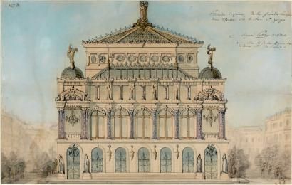 Première esquisse de la façade principale d'un théâtre sur la place Saint-Georges
