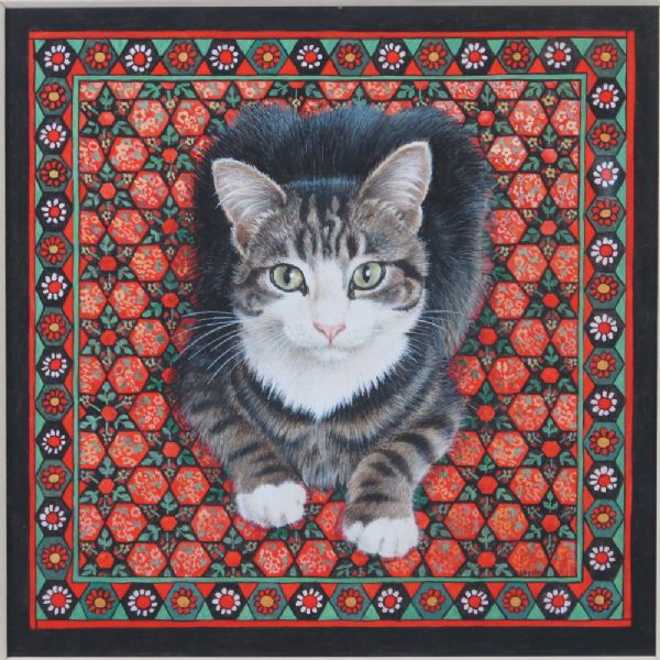 Harry on Stars and Hexagons Patch Work, study of recumbent cat