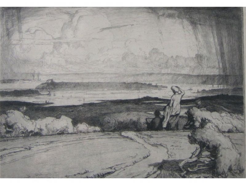 | 'Poole Harbour from Ballard Down, an Artist working. Storm' | |