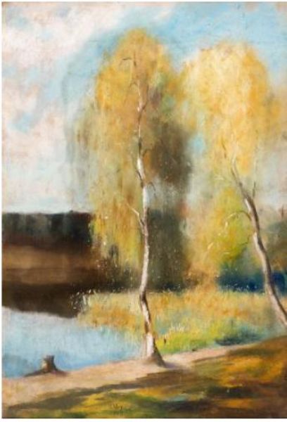 AUTOMNE, BOULEAUX EN BORD DE RIVIERE