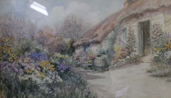 Country cottage views with flowers in the garden