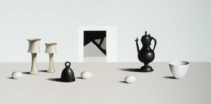 TWO BACTRIAN VESSELS WITH PEWTER FLAGON