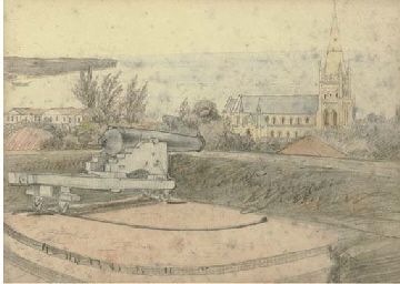 | View south-west from Fort Canning, Singapore, with St. Andrew's Cathedral (1865 | |