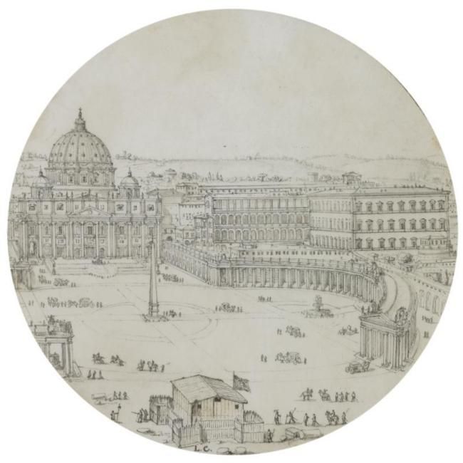 | VIEW OF ST PETER'S, ROME, WITH A MILITARY ENCAMPMENT IN THE FOREGROUND | |