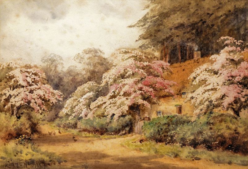 COUNTRY COTTAGES WITH SUMMER FLOWERS AND BLOSSOMS
