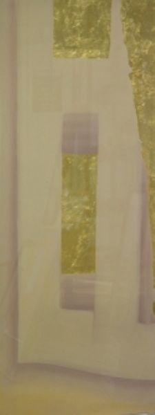 Abstract with applied gold leaf against tones of cream in square and rectangular formations