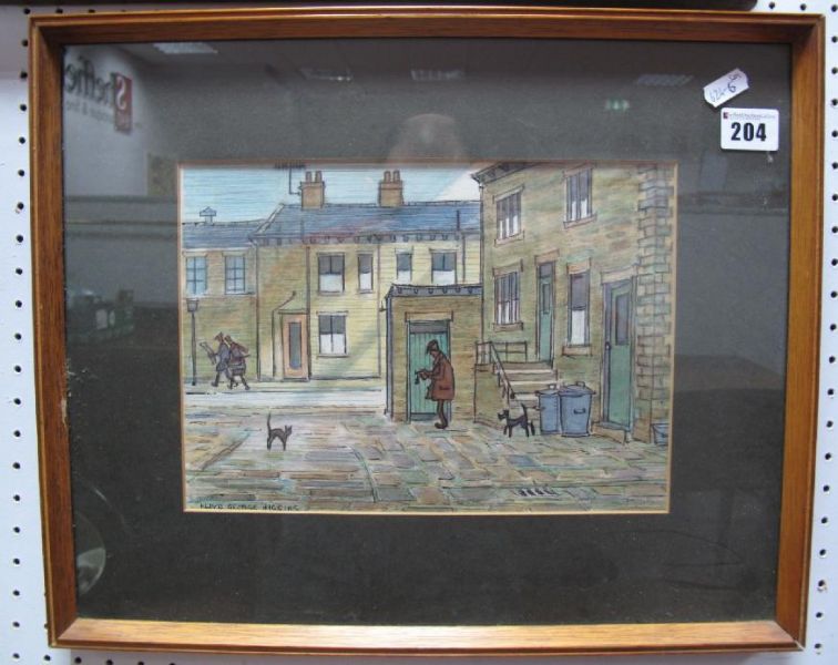 | Old Stone Loo, Mossley, Tameside, Greater Manchester, terraced street scene with people and animals | |