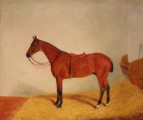 Study of a Chestnut Horse standing in Profile within a Stable Interior