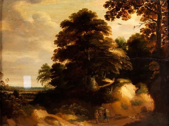 BAUMLANDSCHAFT MIT DÜNENHÜGELN UND FIGURENSTAFFAGE