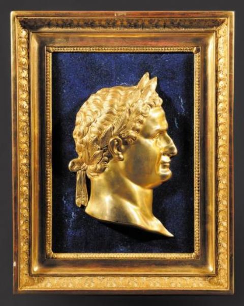 L'Empereur Napoléon 1er de profil à l'antique, tête laurée