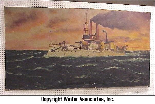 | a U.S. steamship on the ocean with uniformed crew members on deck | |