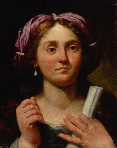 | A PORTRAIT OF A LADY, POSSIBLY A SIBYL, BUST LENGTH, HOLDING AN ARROW AND A SCROLL | |