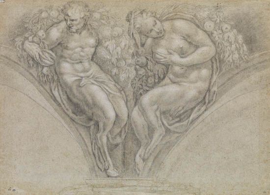Study for a Spandrel Decoration with a Satyr and Satyress.