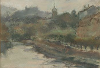 Byggnader vid vatten, möjligen från Zürich