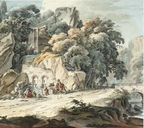 | Bergers au pied d'un torrent dans un paysage italianisant " Voyageurs au bord de la route dans un paysage italianisant " | |