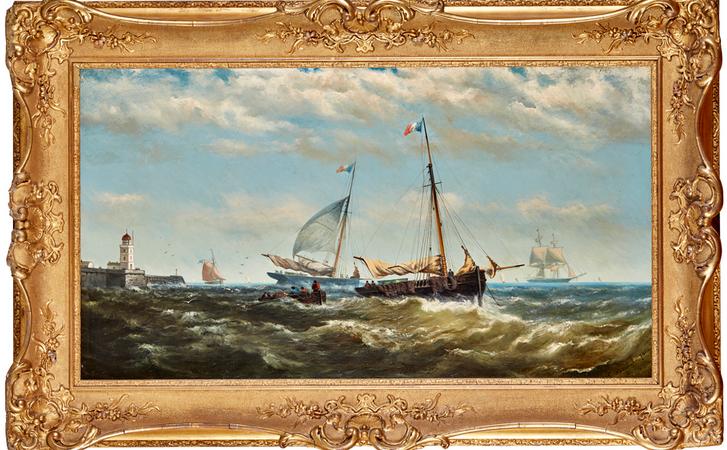 FRENCH FISHING BOATS OFF A LIGHTHOUSE