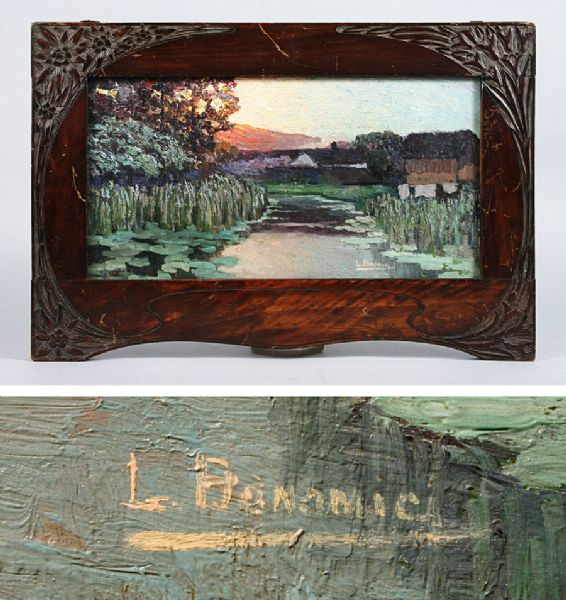 Teichlandschaft vorm Dorf in abendlicher Stimmung, pastose Alla-Prima-Malerei