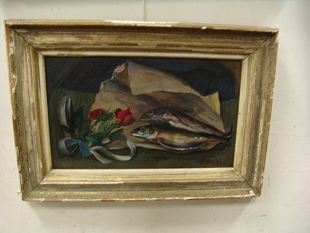 still life wrapped fish with roses