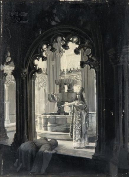 Panurge devant l'oracle de la Dive-Bouteille (?)