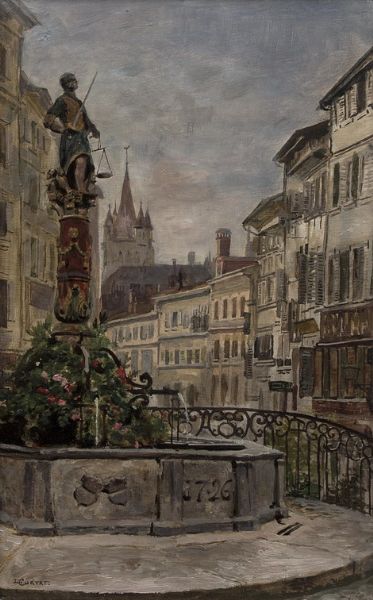 Place de la Palud à Lausanne, avec vue sur la fontaine de la Justice