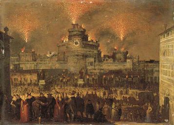 A firework display at the Castel San' Angelo, Rome