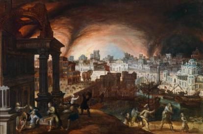 | Aeneas carrying his father Anchises away from the burning town of Troy | |