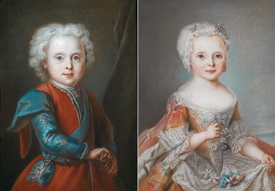 | Juvenile portraits of a Saxon prince (Prince Elector Frederick Christian, 1722-1763?), withthe Order of the White Eagle on a blu | |