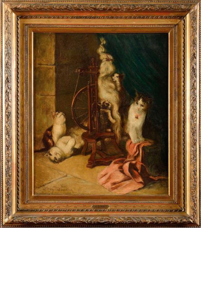 Kittens and spinning wheel