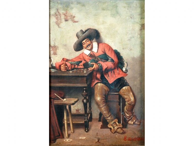 | Cavalier seated counting his card winnings and Cavalier seated smoking a clay pipe | |