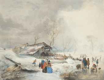 | A winter landscape with figures skating on a river | |