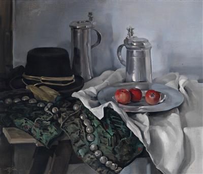 Still Life with Hat, Tin Tankards and Plate with Apples