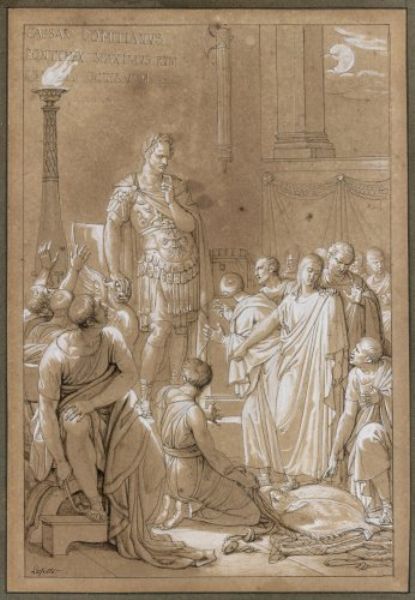 | Pen and black ink, gray wash, white gouache, black crayon | |