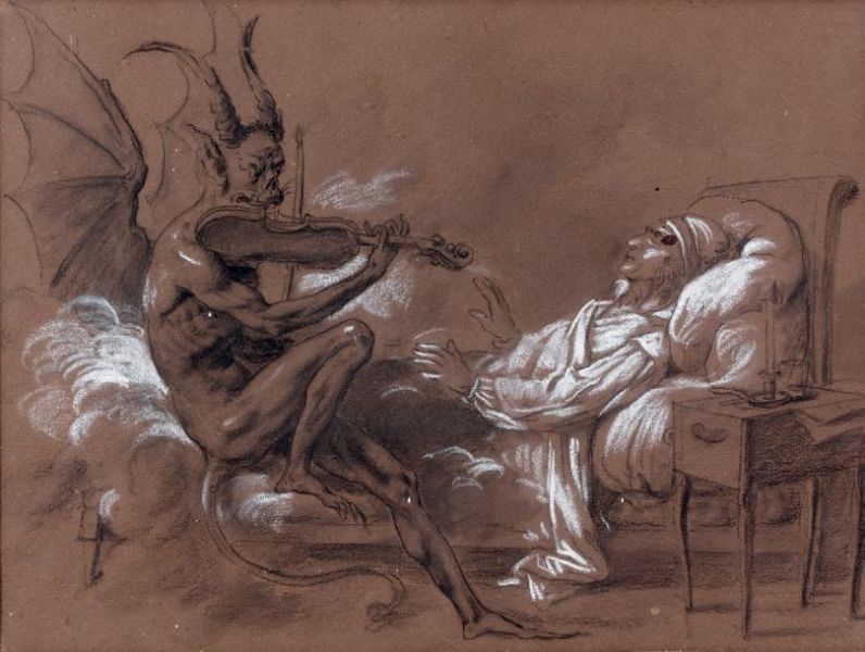 Le songe de Tartini Pierre noire, rehauts de blanc