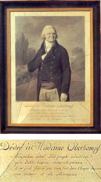 | Trompe-l'œil : cadre à la vitre brisée avec un portrait de Christophe-Philippe Oberkampf | |