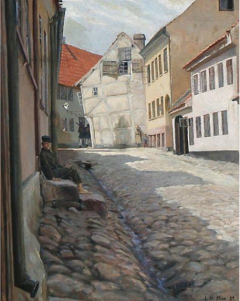 Gadeparti med smilende gadedreng, i baggrunden to gående kadetter
