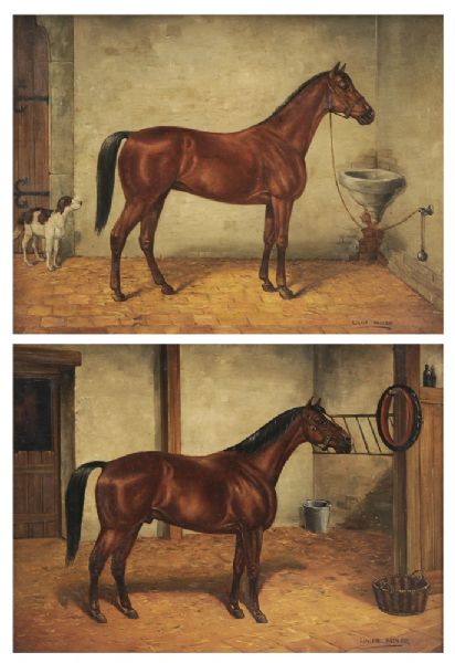 Tethered Horse in a Stall With Dog, Horse in a Loose Bo
