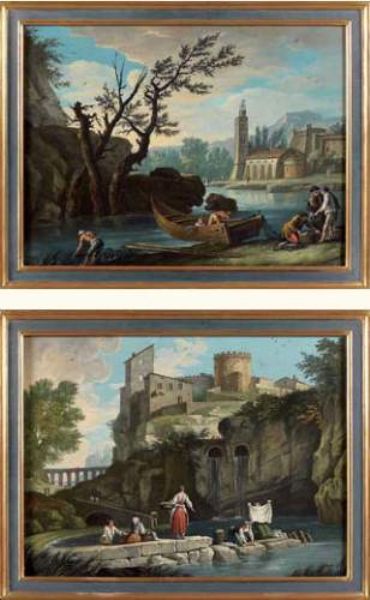 Lavandières devant une forteresse