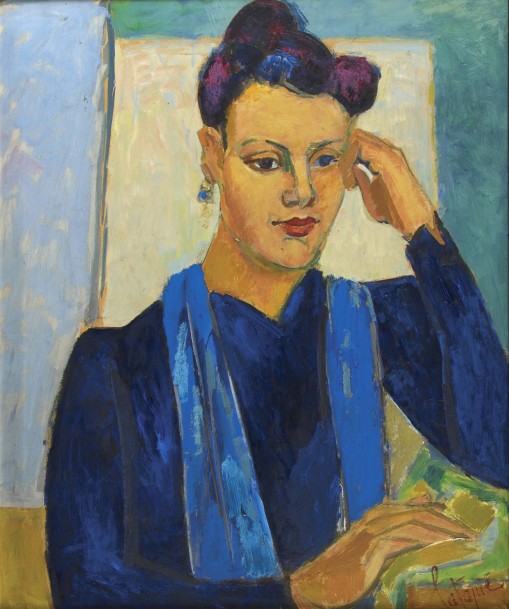 PORTRAIT DE FEMME A L'ECHARPE BLEUE