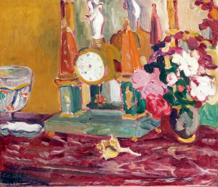 VASE DE FLEURS PRÈS DE LA PENDULE