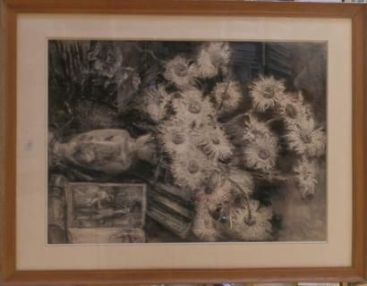 | Hommage à Dumas fils, bouquet de trournesols, éventail et livre ouvert | |