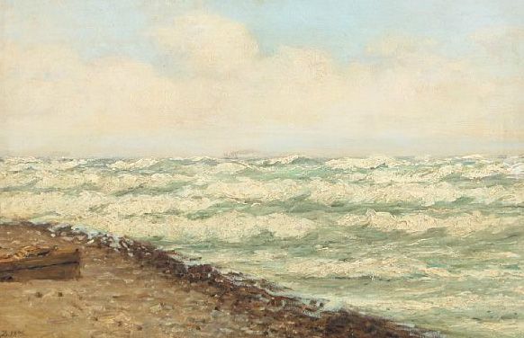 | Coastal scenery with a ship in the horizon. | |