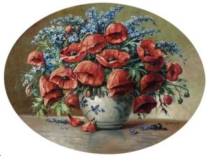 Vase mit Mohn und Vergissmeinnicht