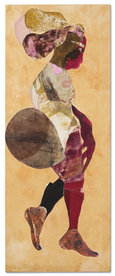| Oil and acrylic on stitched canvas collage on dyed canvas | |