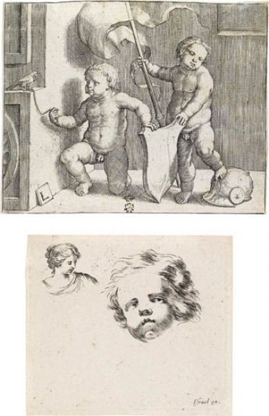Two Naked Children Supporting a Blank Shield.