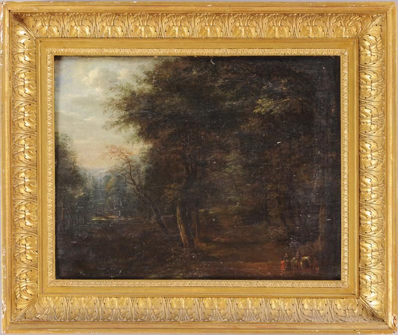 TRAVELLERS IN A WOODED LANDSCAPE