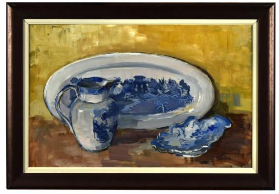 Still life of blue and white china