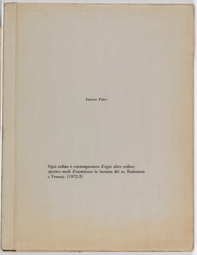 | OGNI ORDINE È CONTEMPORANEO D'OGNI ALTRO ORDINE: QUATTRO MODI D'ESAMINARE LA FACCIATA DEL SS. REDENTORE A VENEZIA (1972-3) | |